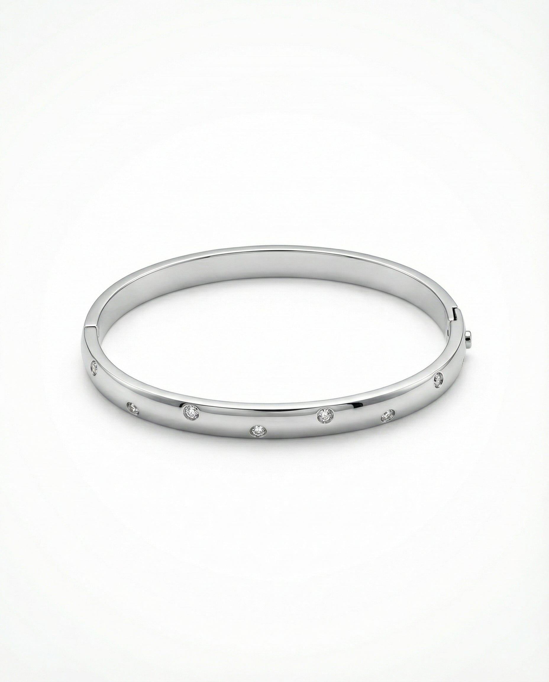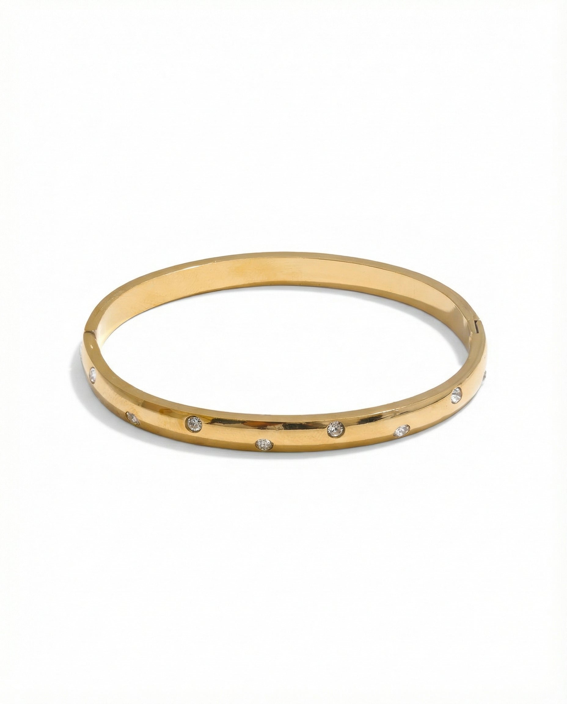 A timeless piece inspired by the night sky, our Celestial Bangle is designed to capture the magic of the stars. Crafted with a sleek, polished band, it’s delicately adorned with sparkling cubic zirconia stones that glisten like constellations in the moonlight.