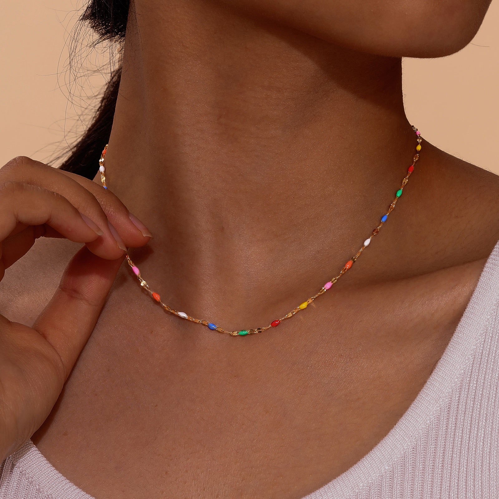 Dainty Rainbow Chain 18k Gold-Plated Stainless Steel with PVD Coating Delicate yet full of personality, this rainbow-hued chain is crafted from 18 carat gold-plated stainless steel and finished with a PVD coating for ultimate durability ~ making it tarnish-free, waterproof, and designed for everyday wear.